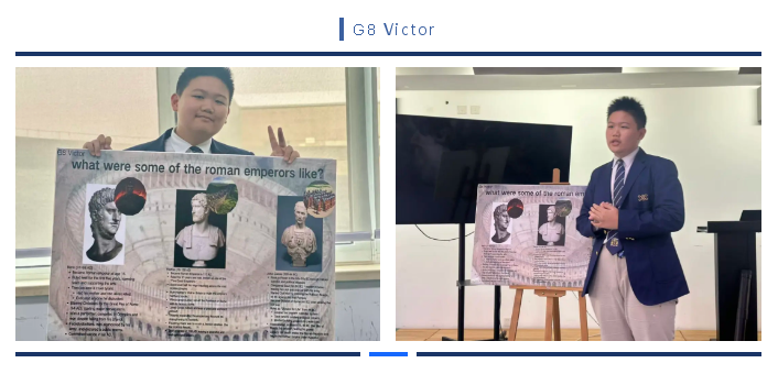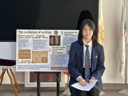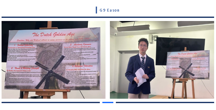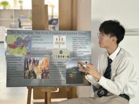 学生们在独属于自己的一方小天地间,用英语表达历史观,向评委展示劳动成果,与老师相对,侃侃而谈。有人追溯古代文明的璀璨星河,从金字塔的建造智慧聊到古代王朝的商贸繁华;有人聚焦近代历史的转折瞬间,在先辈的探索与坚守中感悟其中的精神传承。海报上的一词一句,不只是对“过去事件”的解答,更是一代代人用足迹写下的“经验之书”。