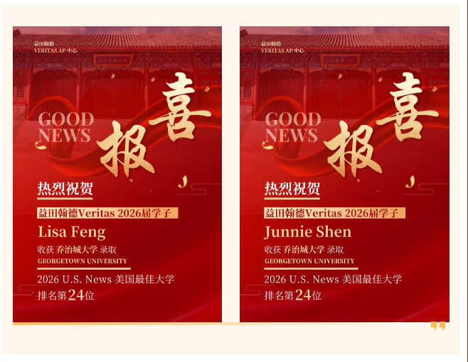 热烈祝贺我校Lisa F、Junnie S二人,成功收获乔治城大学(Georgetown University)本科录取offer!