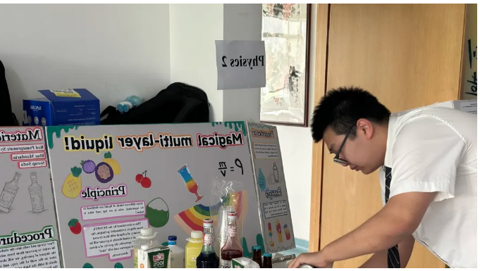 科学展评,是思想的展示,更是探究精神的绽放。一张张海报,是探索的足迹;一次次讲解,是思考的发声。同学们两人一组,选定课题、设计实验、记录数据、总结论点,最终将一整个研究过程,凝练成一张张精致而严谨的科学海报。课本上的知识不再枯燥,生活中的现象不再寻常,每一个问题都值得深究,每一次发现都意义非凡。由各学科骨干教师组成的专业评审团,行走于各个展区,认真聆听、细致点评、公正打分。他们不只是评判成果,更是在守护每一份好奇、鼓励每一次尝试。
