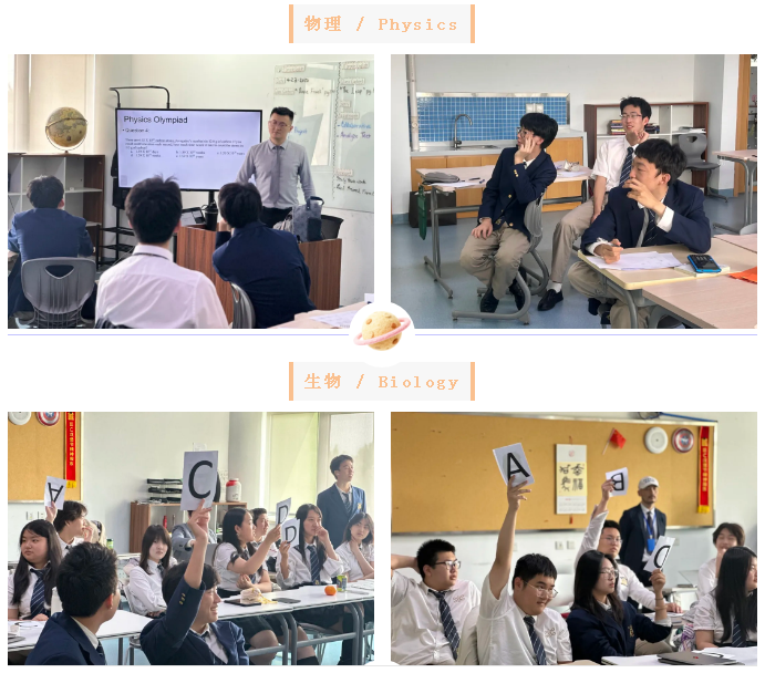 以知识为剑,以思维为锋,在竞技中超越自我。午后的赛场,思维的火花持续点燃。科学奥林匹克分中学组(Middle School)、生物组(Biology)、化学组(Chemistry)、物理组(Physics)四大专场展开。同学们两人一组,在知识与实践的双重考验中沉着应对、通力合作。题目是挑战,更是成长的阶梯;竞争是动力,更是进步的契机。在一次次思维碰撞中,他们不仅收获了知识,更懂得了责任、坚持与协作共赢的意义。公平严谨的评委团队,则为每一场竞技保驾护航,让荣誉实至名归,让努力被温柔见证。