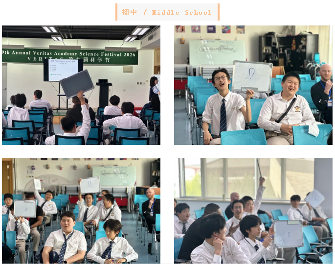 2026年4月24日(周五),在满校园的期待与热情中,Veritas第九届科学节(Science Festival)圆满落下帷幕。这一天,智慧与创意碰撞,实践与协作共生;这一天,每一双眼睛都闪烁着求知的光芒,每一张脸庞都洋溢着探索的喜悦。本届科学节以实践、探究、协作、创新为内核,用四大精彩板块,为全体师生献上了一场有深度、有温度、有乐趣的科学盛宴。迎着清晨的第一缕阳光,随着Mr. Jamis的开幕指令响起,一整天的科学探索之旅,正式启程。