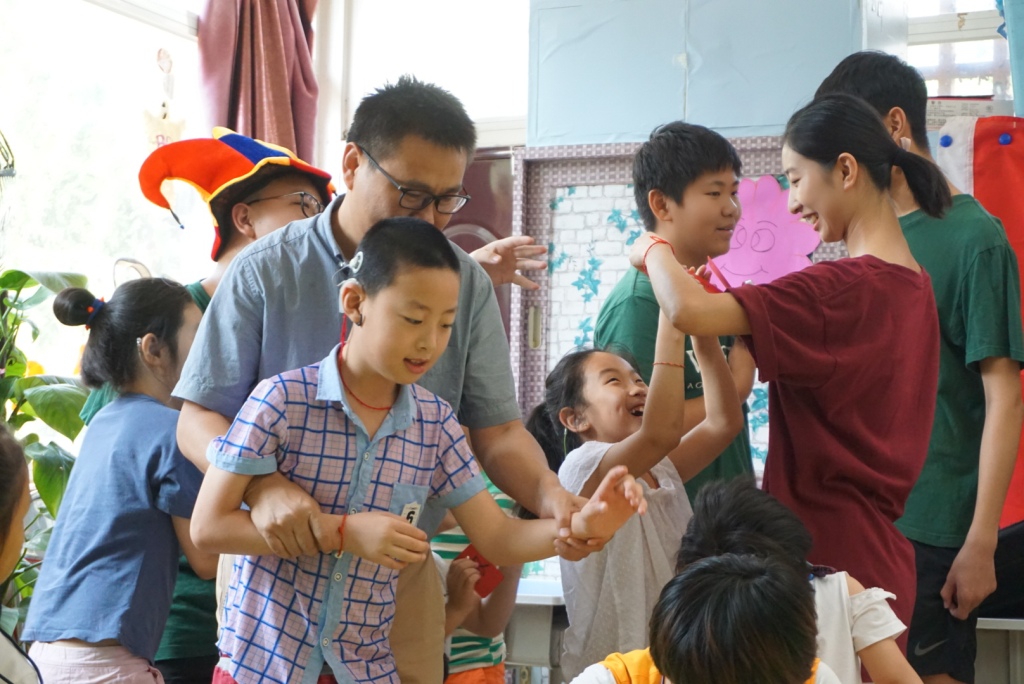 这次活动我们也加入了一名新成员---余福济同学。今天他教孩子写汉字,给他们讲故事表演故事。他陪伴的小朋友特别喜欢他,经常挽着他的胳膊,靠在他的身上,福济像一个大哥哥照顾自己的弟弟一样。对于福济这样年龄的孩子去照顾一个比他还小的孩子真的不是一件容易的事情。希望福济通过这样的活动可以越来越有爱心也越来越耐心。