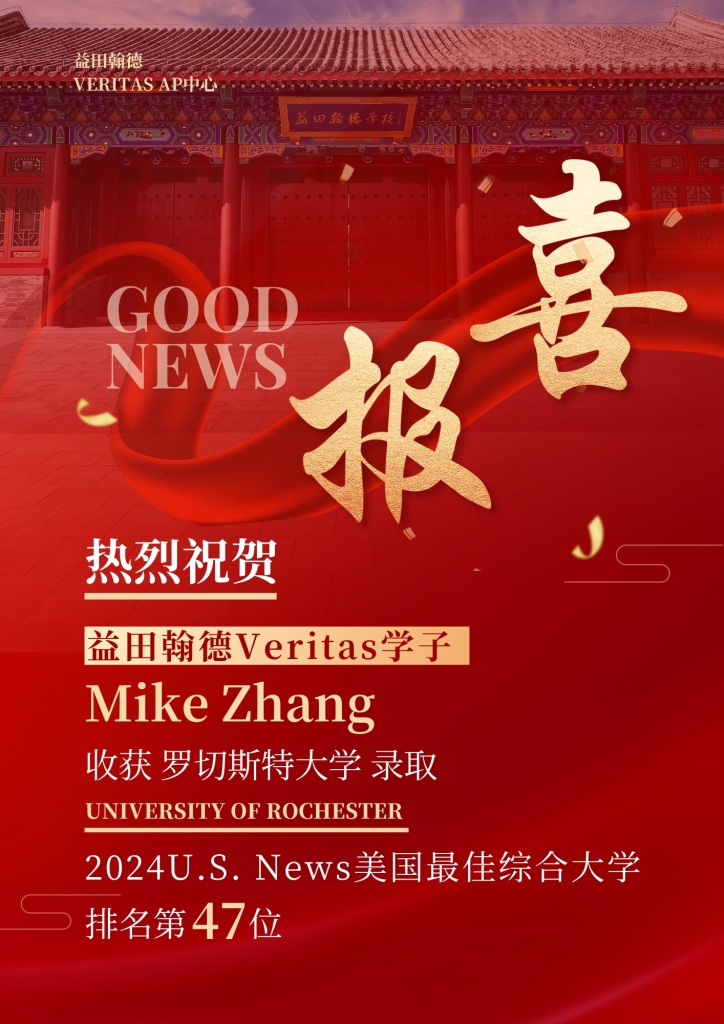 2024届优秀毕业生Mike Zhang 同学收获罗切斯特大学录取!