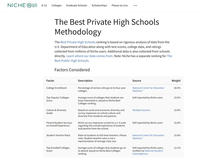 (来源https://www.niche.com/about/methodology/best-private-high-schools/)