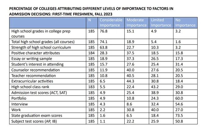 近期,随着新一年申请季的开始,美国顶尖大学及主流教育评论网站也陆续公布了新的录取政策变化及趋势,正如 《普林斯顿展望》(The Princeton Review)指出,“标准化成绩有助于招生官更准确地评估学生的学术潜力,而来自高学术标准学校的学生在这一体系下表现更具竞争力。” 而Niche 2025排名中也统计披露了Veritas毕业生的 SAT 平均成绩高达1400(满分1600),远超州内及全美平均水平,而美国头部学校在审核申请者时,优先考量的是学生学术水平,除标准化考试表现外,课程体系和学校声誉也非常重要。 依照美国权威升学指导联盟NACAC在2023年所做的调研当中, 185名资深升学指导及大学招生官所组成的样本均显示,超过76%的受访者认为大学预科类高中课程在申请评估中是最重要的。