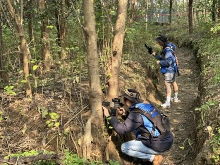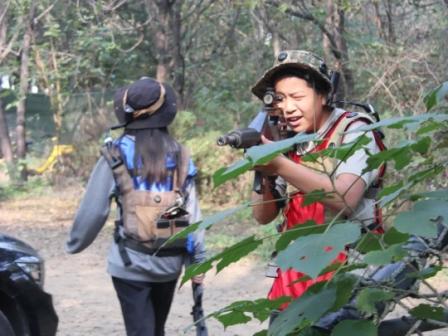 随着教练一声令下,真人 CS 对抗赛正式拉开帷幕!同学们迅速分成不同战队,拿起“武器”,奔赴各自的“战场”。丛林中、掩体后,充满了紧张刺激的攻防较量,现场气氛嗨翻全场。