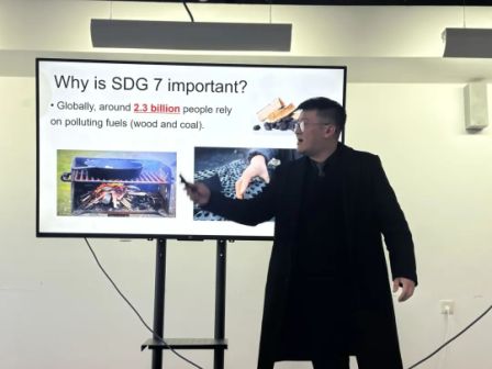 本期SDG主题演讲,王老师围绕SDG7(可持续发展目标第七项)展开,从核心定义、重要性到未来方向,为我们清晰地解答了“什么是SDG7?”“SDG7为何重要?”“未来现代能源的发展?”等三大核心问题。王老师首先明确,SDG的核心是“确保人人获得负担得起、可靠和可持续的现代能源”,这一目标与全民参与及民众的基本生活需求息息相关。谈及重要性,王老师用生动活泼的场景与例子点明能源普惠的重要性:当我们在明亮的教室学习时,全球数十亿家庭因为缺乏电力支持而无法随时随刻享受夜晚的光明;当我们用干净的天然气烹饪美味佳肴时,全球近三十亿家庭仍然依赖柴薪生火做饭。这种方式的污染,加剧空气污染、危害身体健康,助推气候变化,究其原因,是可持续性的清洁能源的缺乏。关于未来,王老师表示,SDG7倡导的风能、太阳能等清洁能源中,太阳能电池已成为能源转型的重要支撑。而钙钛矿等新型材料,凭借低成本、高效能优势,将为绿色能源发展注入动力,加速SDG7落地。