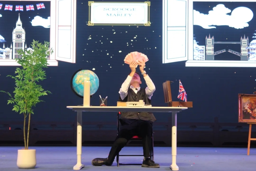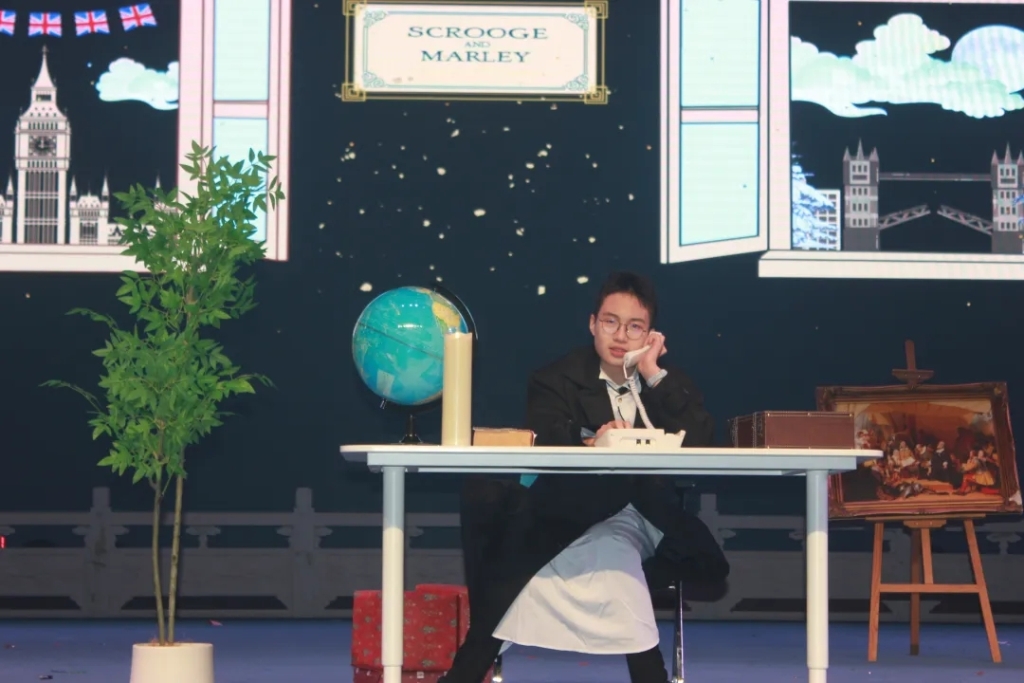 当G9的Eason王子毅饰演的埃比尼泽·斯克鲁奇带着满脸不屑地说出:“Christmas is a Humbug”(圣诞是骗人的把戏)这句经典台词时,舞台下的观众瞬间被带入查尔斯·狄更斯笔下的圣诞世界。作为维多利亚时代圣诞文学的标杆之作,Veritas师生对《圣诞颂歌》(A Christmas Coral)的改编与演绎,成为本次新年盛会最浓墨重彩的一笔.