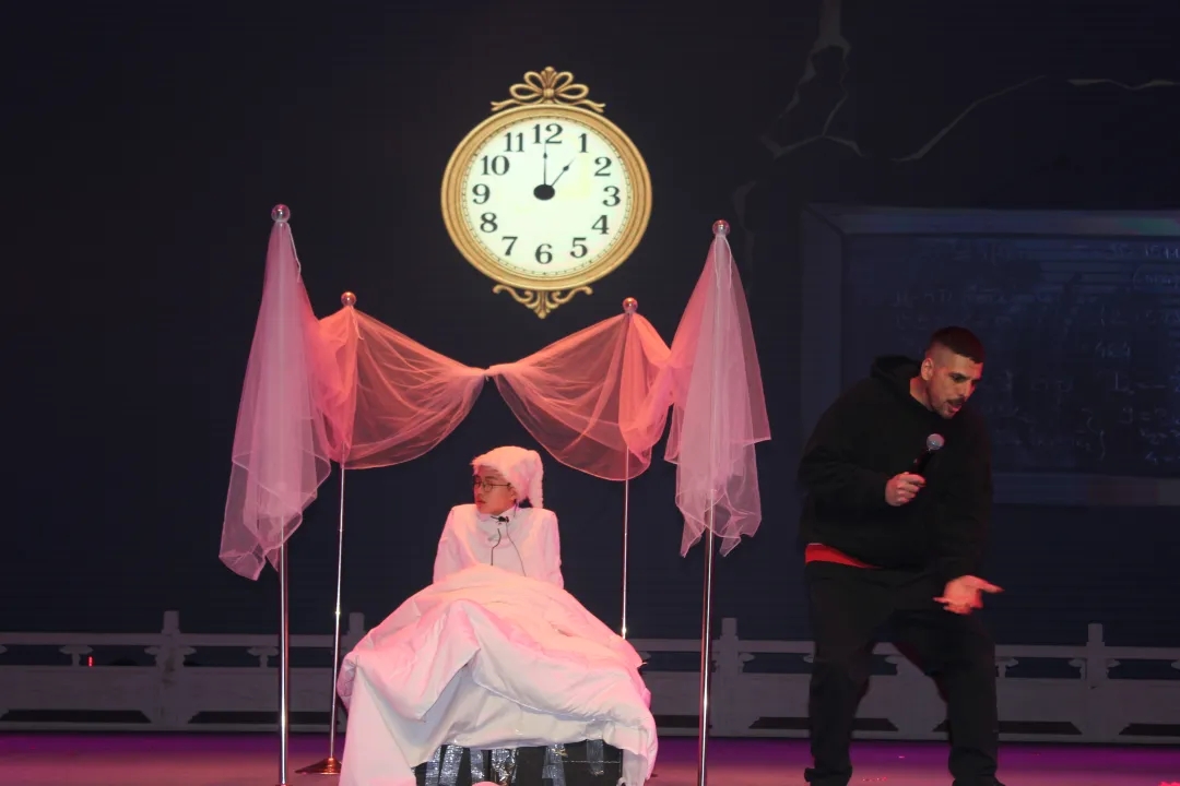 如果说经典戏剧《圣诞颂歌》是汇演的“灵魂”,那么丰富的环节设计则为这场盛会注入满格活力。歌曲演唱、舞曲表演、乐队演唱、师生合唱、喜剧小品等轮番上场,中场猜歌游戏更是将节日氛围推向高潮;一个又一个舞曲节目轮番上演,同学们的活力与风采在舞台上尽情挥洒。