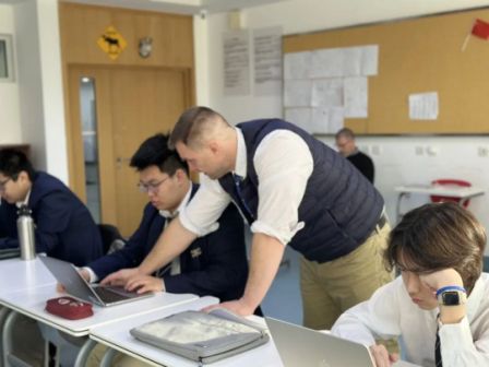 Mr. & Mrs. Elgut 校长夫妇一进校园,便径直走进课堂一线,近距离观摩Veritas北京校区的日常教学实况,细致了解课程的实施细节以及学生的课堂状态。