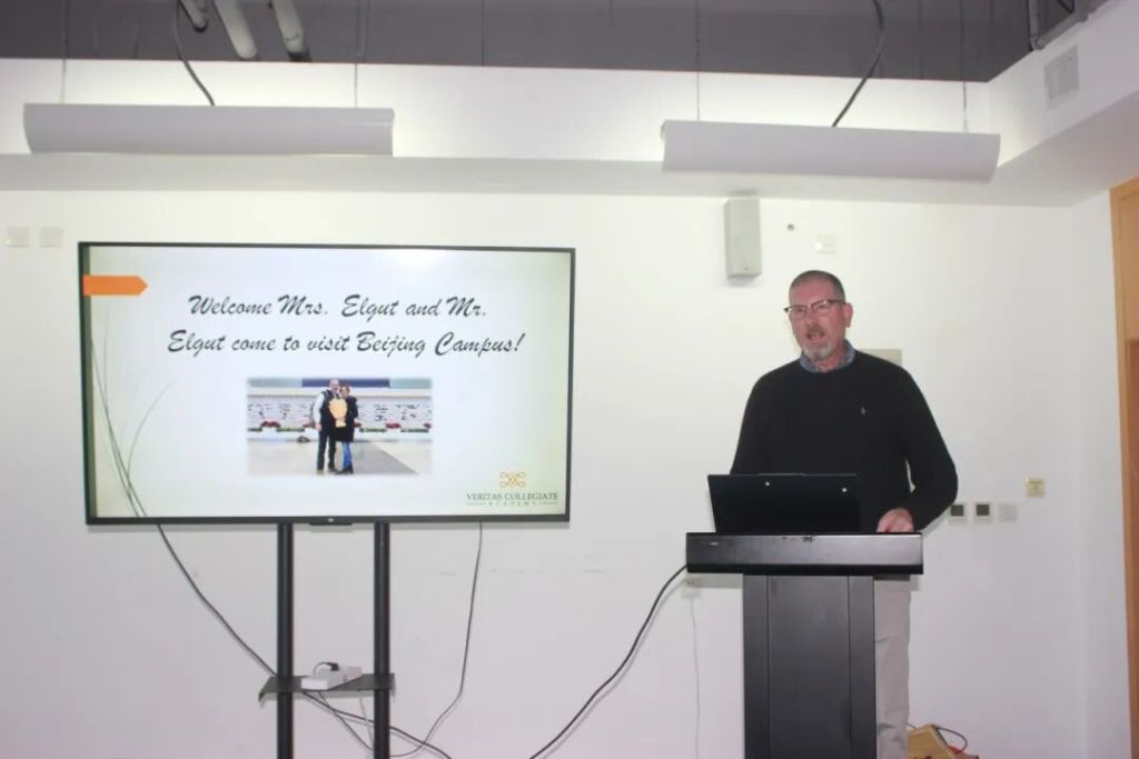 2026年1月12日(星期一),全美顶尖私立学校Veritas Collegiate Academy 总校创始校长Mr. & Mrs. Elgut 夫妇亲临益田翰德学校国际部 Veritas 北京校区,走进课堂、参与集会、与师生亲切交流。