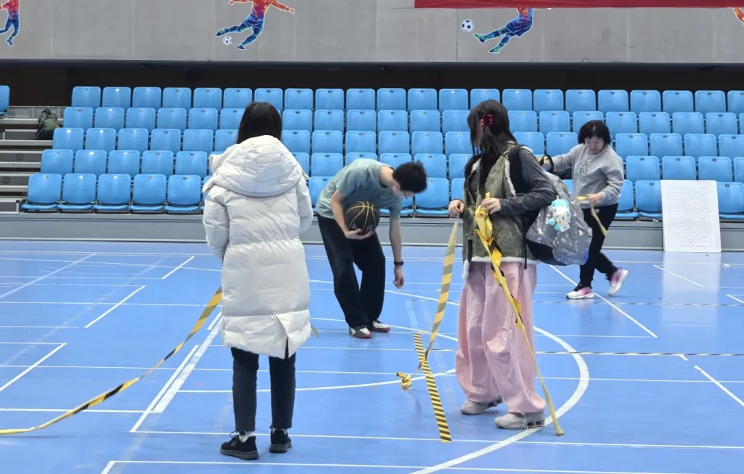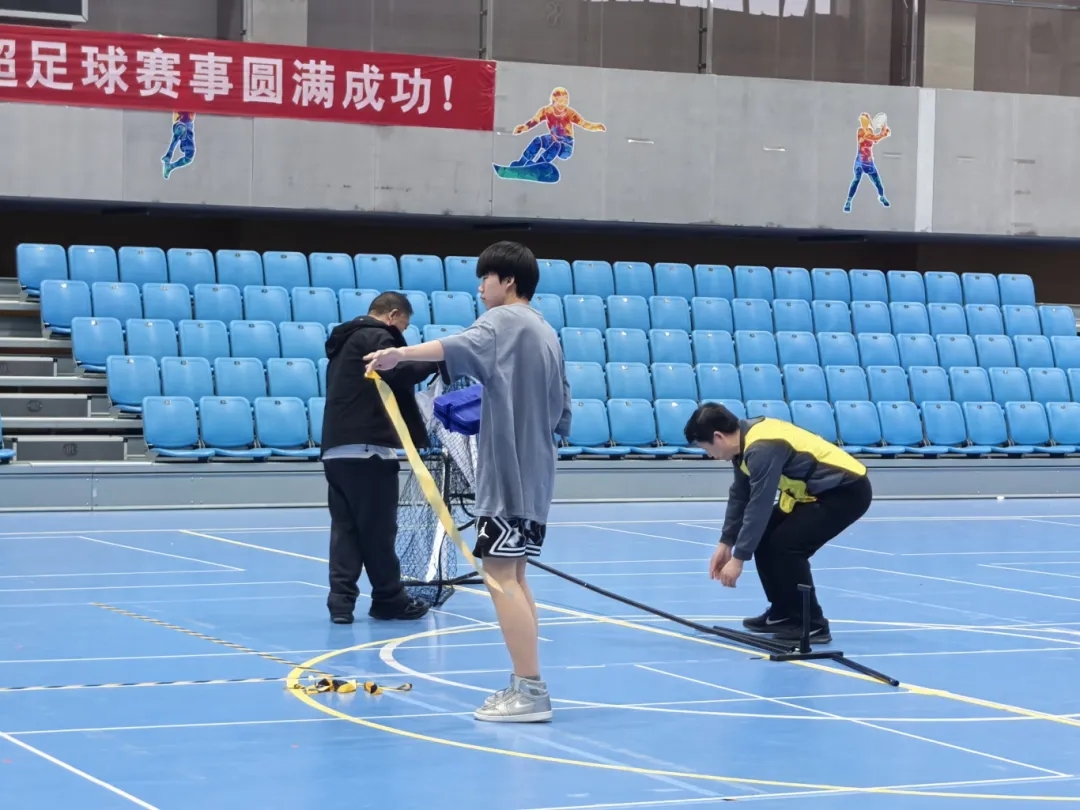 一场考验全能与默契的六项连环战!A点出发,从篮球绕杆、极速跳绳,到足球变向,选手们身手敏捷、节奏井然……但这还不是全部,最考验默契的环节来了:一人投掷匹克球,一人腰系接球框,仅凭腰腹转动完成接球;一路颠球前行,球落何处,便从何处重新出发;最后选手在旋转五圈后,顶着晕眩冲向终点。最终,用时最短的队伍获胜。但比成绩更珍贵的,是每一次完美的交接、每一句“没事慢慢来”、每一个冲刺后的击掌与拥抱。