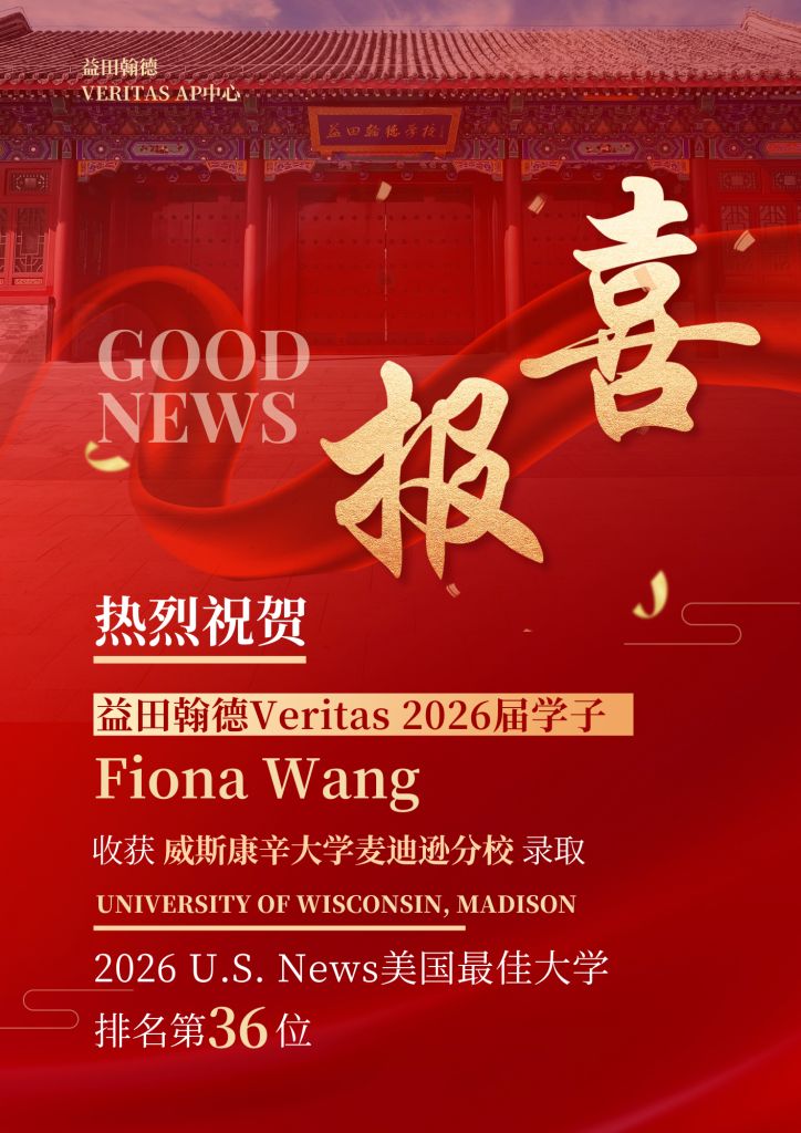 2026届优秀毕业生Fiona Wang同学收获威斯康辛大学麦迪逊分校录取!