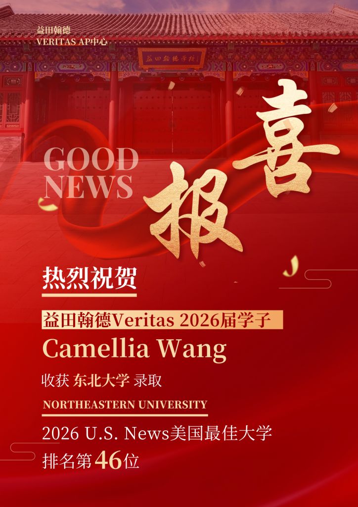 2026届优秀毕业生Camellia Wang同学收获东北大学录取!