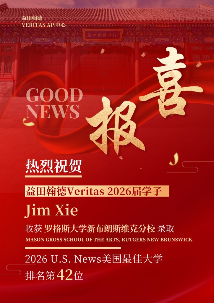 2026届优秀毕业生Jim Xie同学收获罗格斯大学录取!