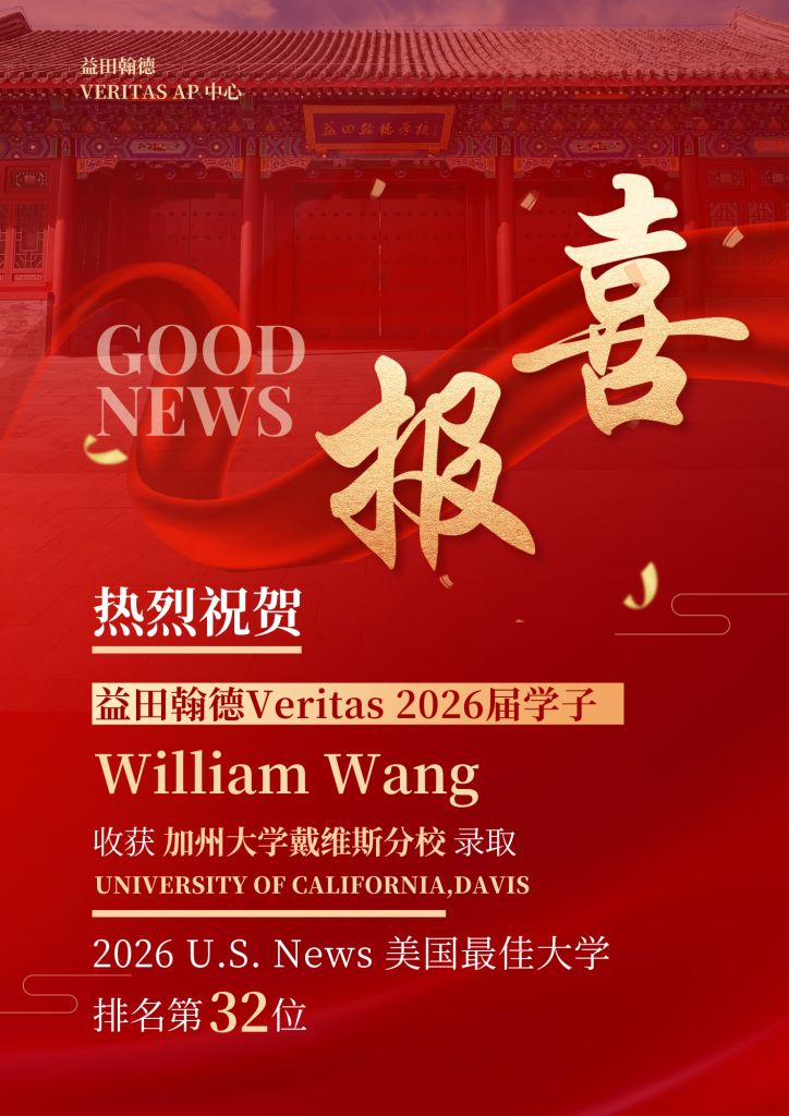 2026届优秀毕业生Lisa Feng同学收获加州大学戴维斯分校录取!