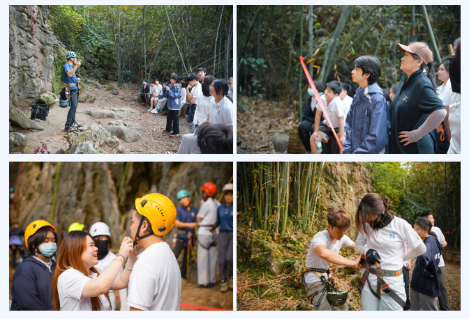 抵达攀岩基地后,专业教练首先为孩子们系统讲解了攀岩运动的起源、阳朔攀岩的发展历史,以及这项运动与喀斯特岩壁的紧密联系。随后,教练手把手演示了安全装备的正确穿戴方法,并反复强调了攀登过程中的安全规范与动作要领。看着眼前形态奇特、布满岩点的石灰岩岩壁,孩子们早已按捺不住兴奋,纷纷摩拳擦掌、跃跃欲试。