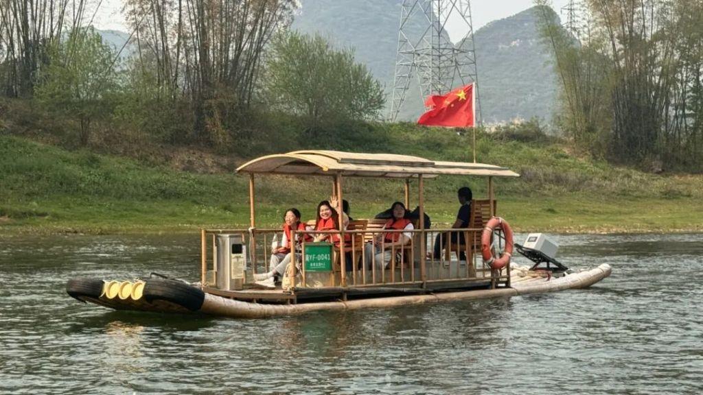 下午,我们乘车前往福利村,开启期待已久的漓江竹筏之旅。行车途中,小麦老师结合《阳朔地质保护科考手册》,为孩子们详细讲解了水质检测的标准流程、检测项目的意义,以及水样采集和保存的注意事项。抵达码头后,孩子们3-4人一组,每人手持提前准备好的空矿泉水瓶,乘坐竹筏缓缓驶入漓江画卷。